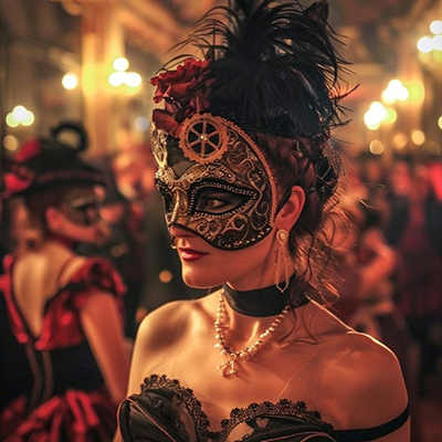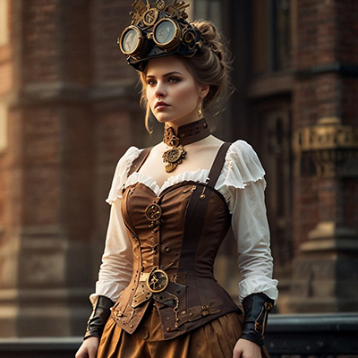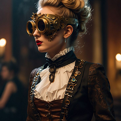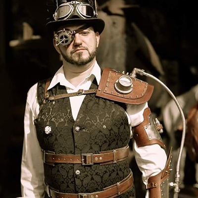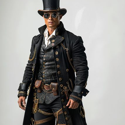 No Black Tie Full Steampunk Enfilez vos plus belles bottes d’aventurier, vos chemises aux tons beiges et une veste en cuir. Complétez votre look avec des accessoires cuivrés et dorés: montres à gousset et et des gants de cuir. N’oubliez pas les chapeaux haut-de-forme rehaussés de plumes ou de lunettes d’aviateur. Entrez dans l’univers steampunk avec élégance et audace !
